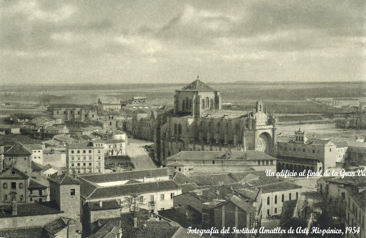 La imagen pertenece al Instituto Amatller de Arte Hispánico que fundó en 1941 el arquitecto, historiador y fotógrafo D. José Gudiol Ricart, gracias a la cesión de fondos del industrial chocolatero y fotógrafo D. Antoni Amatller por parte de su hija Teresa. Fue realizada desde una de las torres de la Clerecía, probablemente por el propio Gudiol en 1954 ya que se sabe de su presencia en Salamanca en ese año y de un buen número de fotografías de su visita.