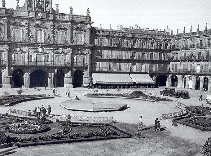 Por aquellos años continuaba la tendencia a minimizar los jardines de la Plaza Mayor que en sus inicios había llegado a ser un pequeño bosque. Entonces comenzó a gestarse su eliminación.