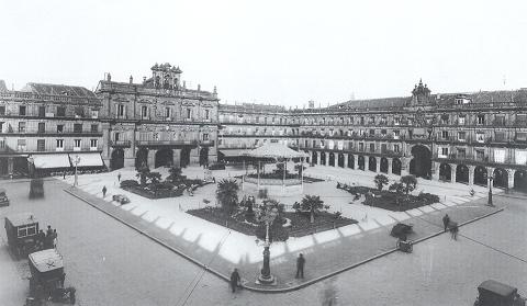 La fotografía permite ver el estado de los jardines de la Plaza Mayor en 1910.