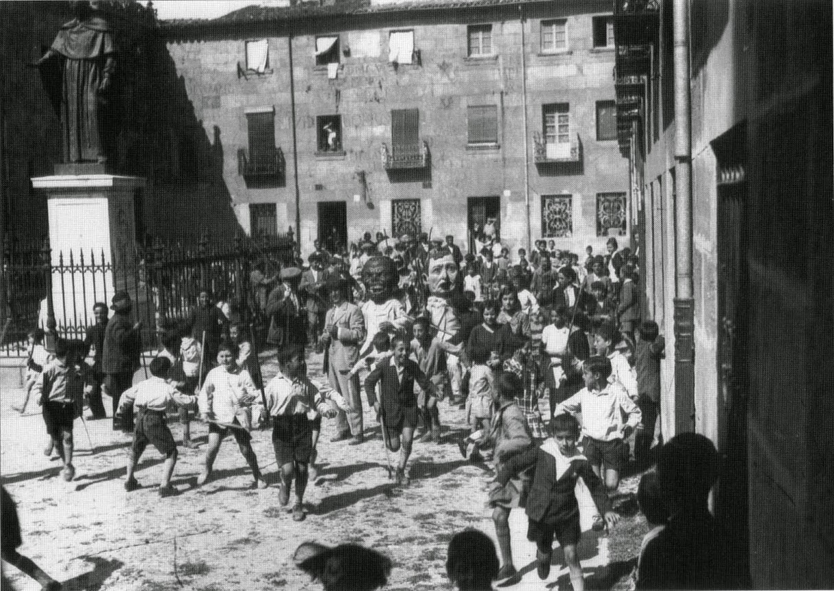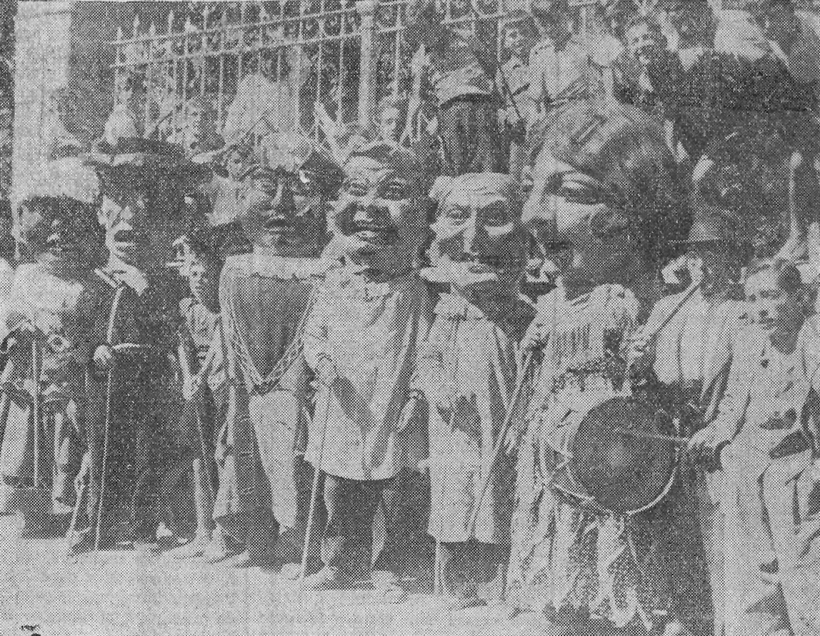 | Las gigantillas o cabezudos durante los años 50. Fotografía de Guzmán Gombau |