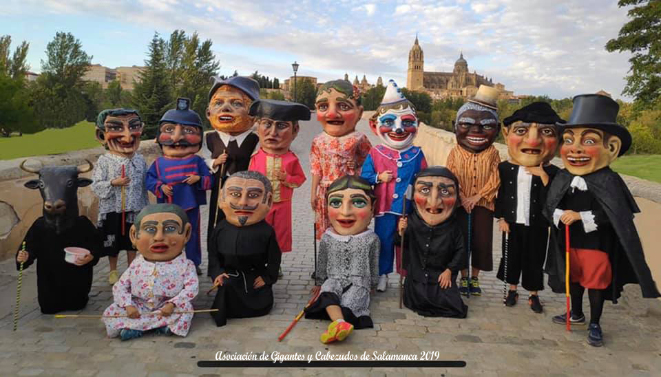| Plantel de gigantillas o cabezudos, mantenidos por la Asociación Cultural Gigantes y Cabezudos de Salamanca |
