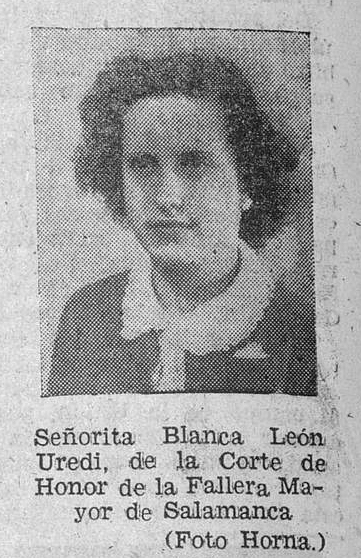 Algunas fotografías de las señoritas de la Corte de Honor de la Fallera Mayor de Salamanca publicadas en el diario El Adelanto de aquellos días de marzo de 1946