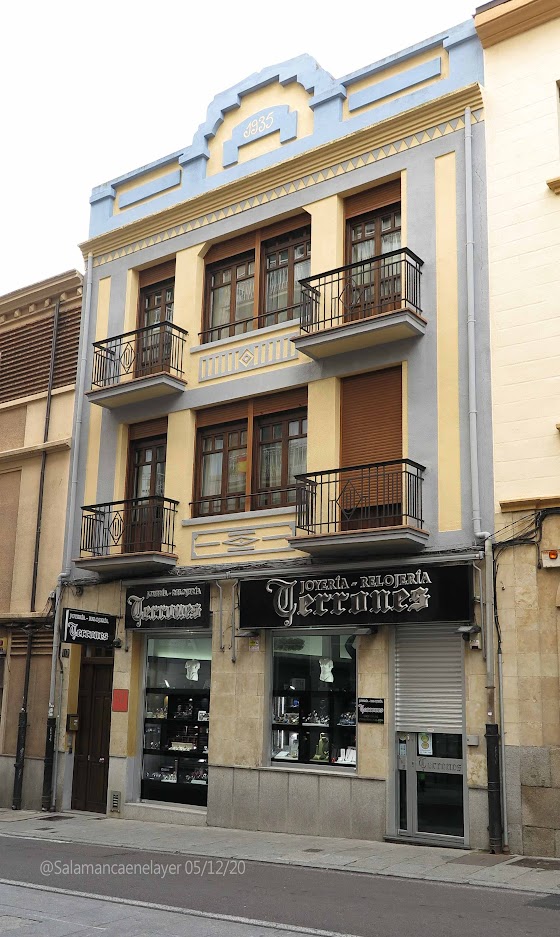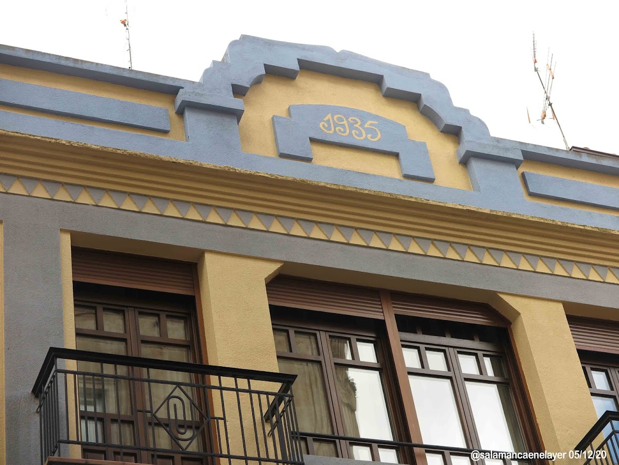 En 1935, el Sr. Mulas encargó al arquitecto D. Lorenzo González17 el proyecto para una nueva construcción, aprovechando las subvenciones y ventajas fiscales de la llamada ley Salmón del 25 de junio de 1935 para la lucha contra el paro en el sector de la construcción. Esta ley recibió ese nombre por su promotor el ministro de trabajo D. Federico Salmón y generó una oleada de construcciones en España y también en Salamanca, alguna más en esta calle.