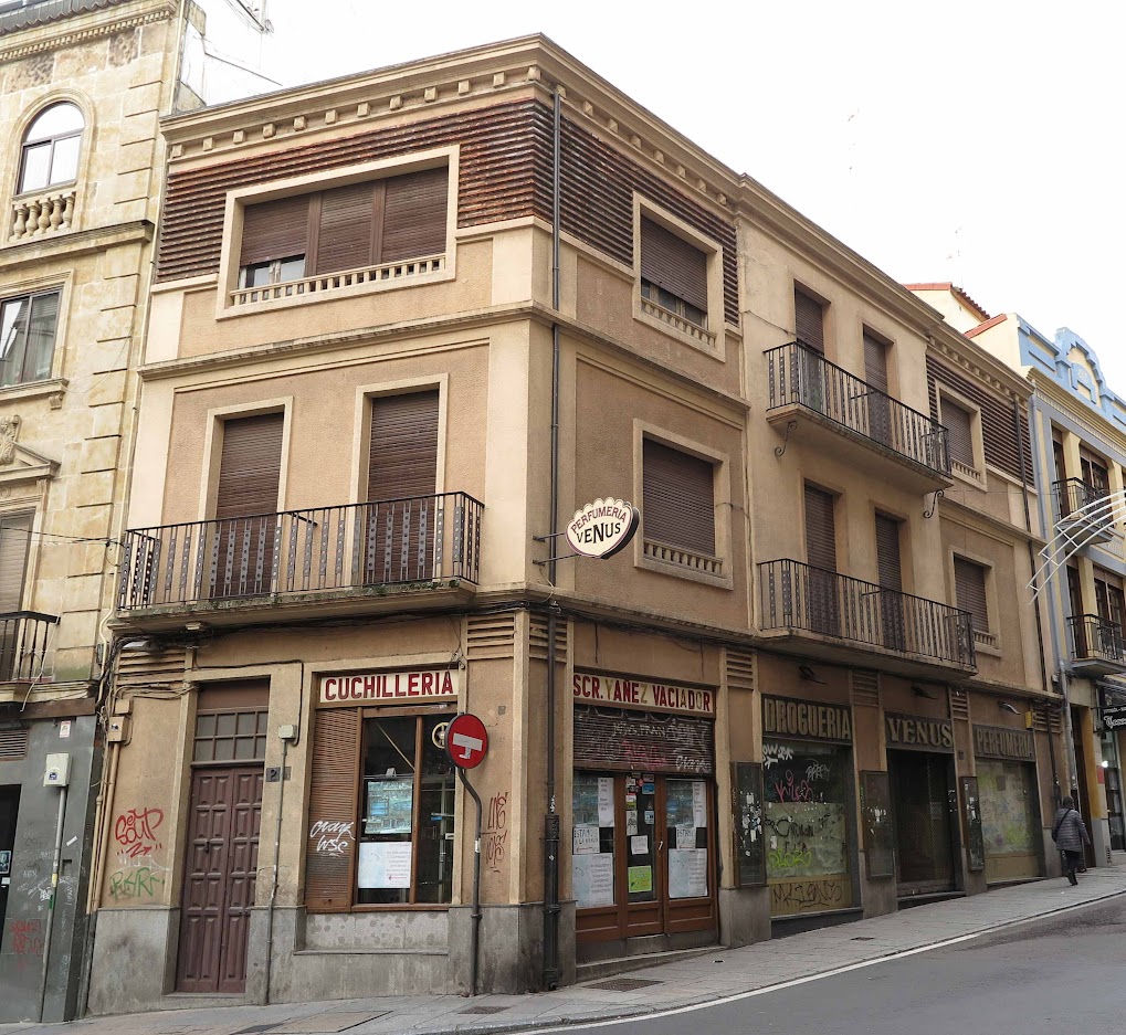 Los bajos del inmueble, a excepción de la cuchillería, fueron ocupados desde 1955 por la Perfumería Venus, cuyo cartel distintivo se mantiene a día de hoy. Sus propietarios Dª Aurora Deogracias Crego, reconocida empresaria salmantina, y D. Victoriano Hernández Martín adquirirían a Dª Esperanza posteriormente la totalidad del inmueble en 1965 modificando su interior y renovando la fachada a finales de los años ochenta. Mantuvieron abierto el negocio de perfumería Venus durante más de sesenta años hasta su cierre definitivo en 2015 y la venta del edificio en 2017. La cuchillería siempre fue un local arrendado anexo al edificio (Información de Javier Martín, 10/6/25)