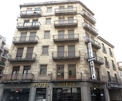 Fue nuevamente edificado por el hostelero D. Canuto Egido Mulas con un proyecto de 1945 del arquitecto D. Ricardo Pérez Hernández19. El edificio, de 6 plantas más sótano, tuvo la entrada por la calle Caleros, adoptando el número 2, su fachada es de piedra franca tal como señalaba la normativa urbanística de aquel momento a la que se adapta estilísticamente. Tras su reforma a finales de los años 80 trasladó la entrada al Pozo Amarillo número 20, actual, carece de división horizontal dada su utilización como hotel, hoy con el nombre de hotel residencia Amefa, después de haber sido muchos años hotel restaurante Argido.