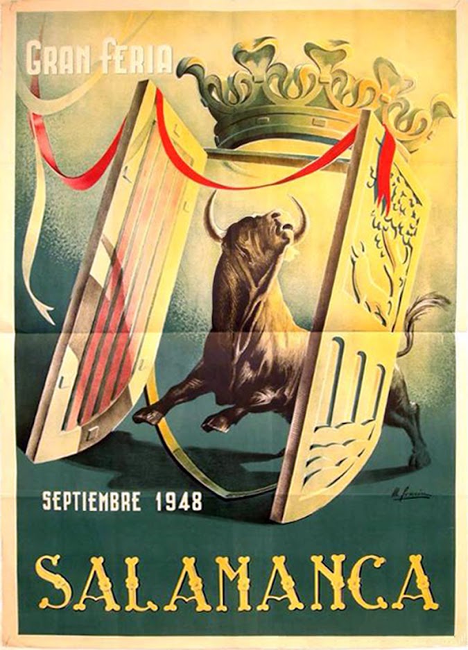 El de 1948, al que se presentaron once originales, lo gana de nuevo Manuel Gracia bajo el lema “Marco”, que aparte de la firmeza y destreza del dibujo y la fluidez del colorido, presenta originalidad en su composición pues figura un encampanado toro saliendo por “la puerta de chiqueros” de doble hoja, en cada una de las cuales se ve la mitad del escudo salmantino. El dintel lo constituye la corona denominada “coronel español”.