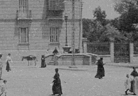 A primera vista no es fácil localizar el lugar que muestra esta fotografía (un cristal estereoscópico positivo), más aún cuando en la actualidad no se conserva ningún edificio reconocible en ella. A pesar de ello, el espacio urbano es prácticamente el mismo de hoy en día.