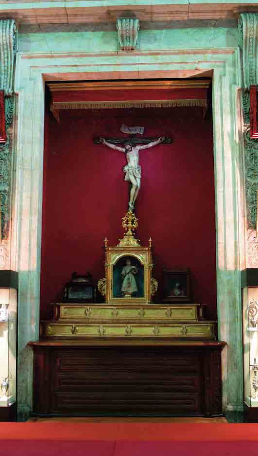 pequeño retablo -sobre cajonera- en el que se encuentra un Cristo crucificado de