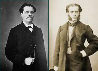 Destaca del libreto de Luis Olona y música de Cristóbal Oudrid, en la comedia de mágica en 3 actos, en prosa y en verso estrenada el 07/10/1849 en el teatro del Circo, el pasacalle de “La Estudiantina” con su letrilla: “Que aquí va la Estudiantina / alto allá, fuera la gente / que aquí va la estudiantina. / Más poder tienen sus tes…tos / que un cañón de artillería. / Las sotanas el cebo son del amor / las muchachas se pirran por su color / las chiquillas que llegan a conjurar / ay! ay! ay! ay! ay!”. Cristóbal Oudrid y Luis de Olona |