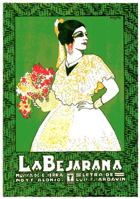 Zarzuela en 2 actos y 6 cuadros, original de Emilio Serrano y Francisco Alonso, libreto de Luis Fernández Ardavín, estrenada en el teatro Apolo el 31/05/1924, sitúa la acción en los alrededores de Béjar en 1860. Llegó a representarse 3 veces diarias. Destacan el “Pasodoble de los quintos”, puesto de actualidad por la guerra de Marruecos: “Bejarana no me llores / porque me voy a la guerra / ya vendrán tiempos mejores / en que cuides la becerra / mientras yo riego la tierra / para que tú tengas flores”, y una “Charrada”, baile típico salmantino. José Luis, criado del rico labrador Pedro, está enamorado de su hija y es correspondido. Pero Esteban, amigo del padre, requiere de amores a la joven y en la disputa José Luis pierde el empleo. Esteban emplea la fuerza para apropiarse de la joven y José Luis consigue salvarla con lo que el padre acepta el noviazgo de la pareja. Se rodó una película dirigida por Eusebio Fernández Ardavín, estrenada el 03/abril/1926 en el teatro de la Zarzuela. Partitura; Libreto |