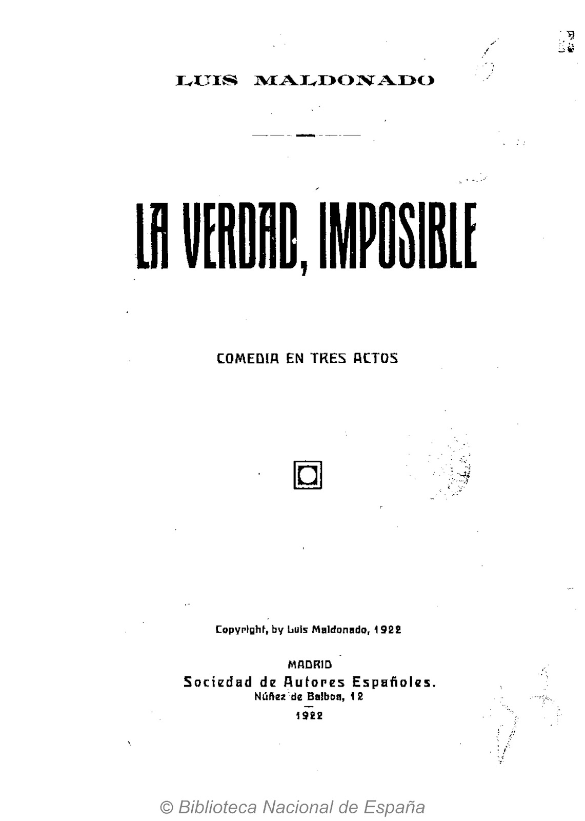 La verdad… imposible.- Sociedad de autores españoles. 1922.