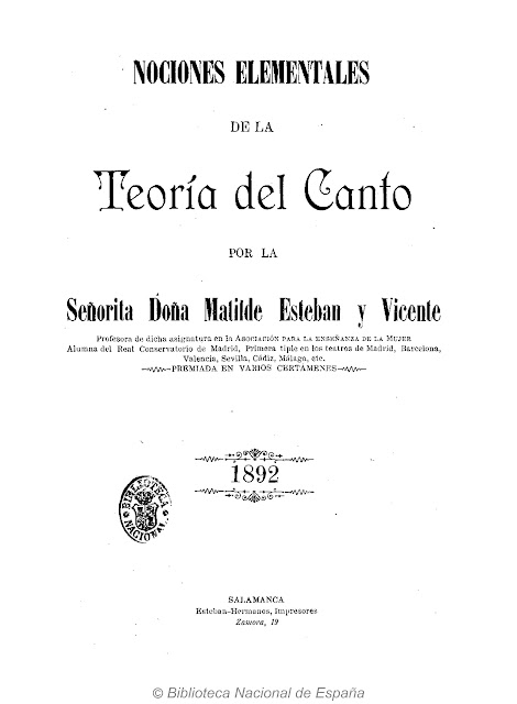 En 13/05/1892 publicó un breve tratado que se titulaba “Nociones elementales de la Teoría del Canto”, editado en Salamanca por la imprenta de Esteban Hermanos, en Zamora 21/23, que luego fue la Imprenta Almaraz, de enormes puertas abatibles de sólida madera y con ventanas enrejadas a la altura de la acera en la calle de Concejo. A pesar de constar solo de 14 páginas es relevante por ser la primera investigación sobre técnica vocal exenta. A continuación de la última página sitúa un B. L. M. a Francisco Asenjo Barbieri donde se define como “Profesora de canto de la Asociación para la enseñanza de la mujer”. Estructura el Tratado en 4 capítulos: I) Respiración, II) Emisión de la voz, III) Filar sonidos.-Intervalos.- Agilidad y IV) Vocalización.