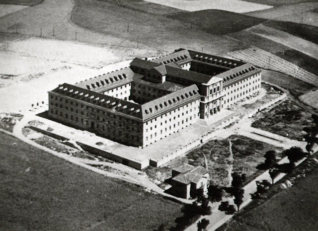 Todo el edificio posee forma de paralelogramo de 129 metros de largo por 66 de ancho, resultando un fiel reflejo, a escala reducida el Monasterio de El Escorial; y aunque tampoco falta y granito en el zócalo y otras partes, es la dorada piedra de Villamayor la que recubre todo el edificio.