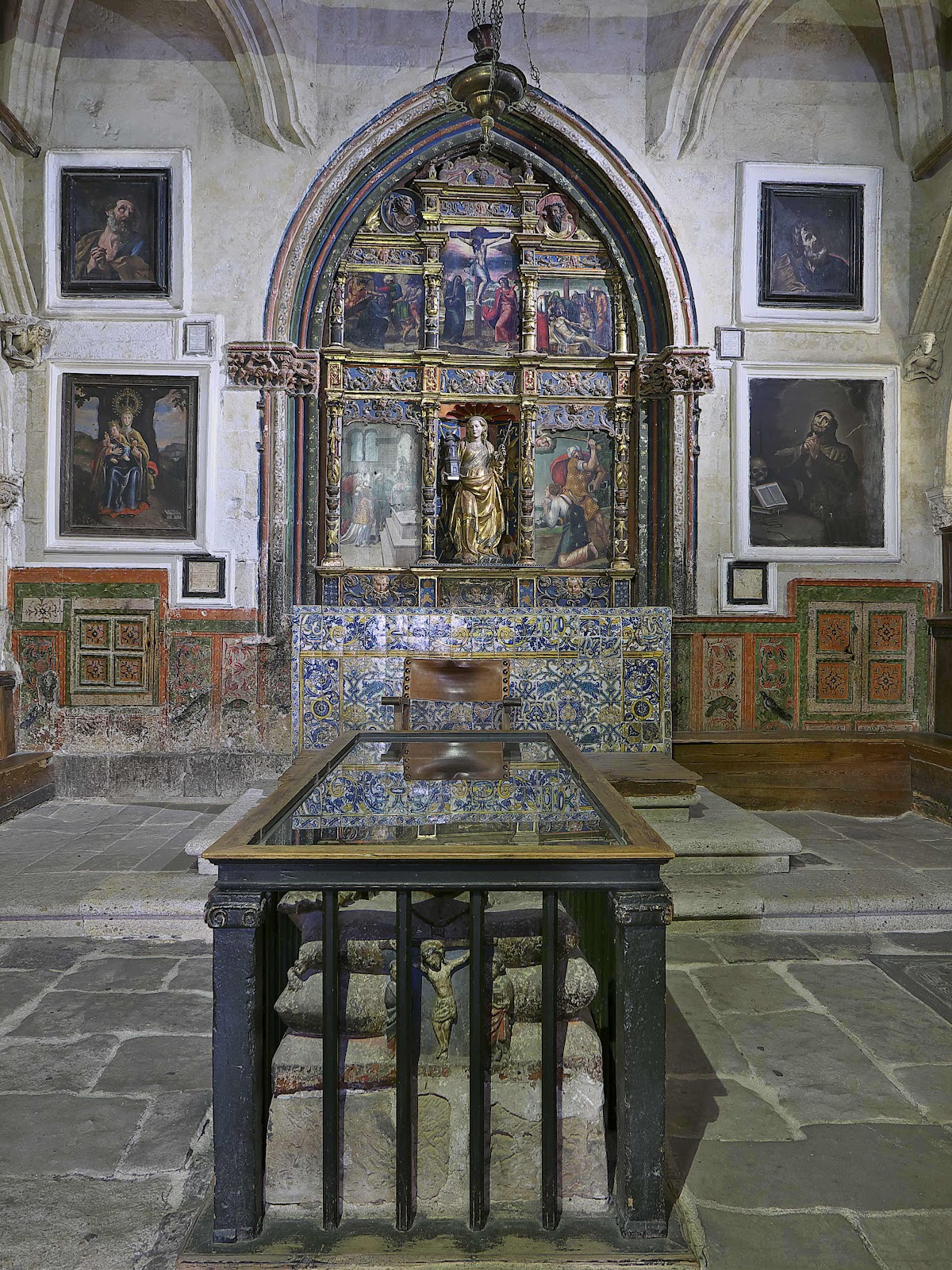 góticas del siglo XIV en el arco en el que se sitúa el retablo del siglo XVI de